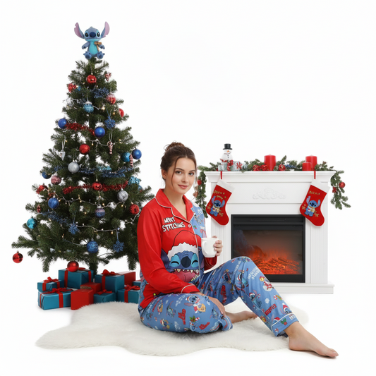 Cute Stitch Sleigh Ride Merry Stitchmas Lilo & Stitch Christmas Gift Pajamas Set